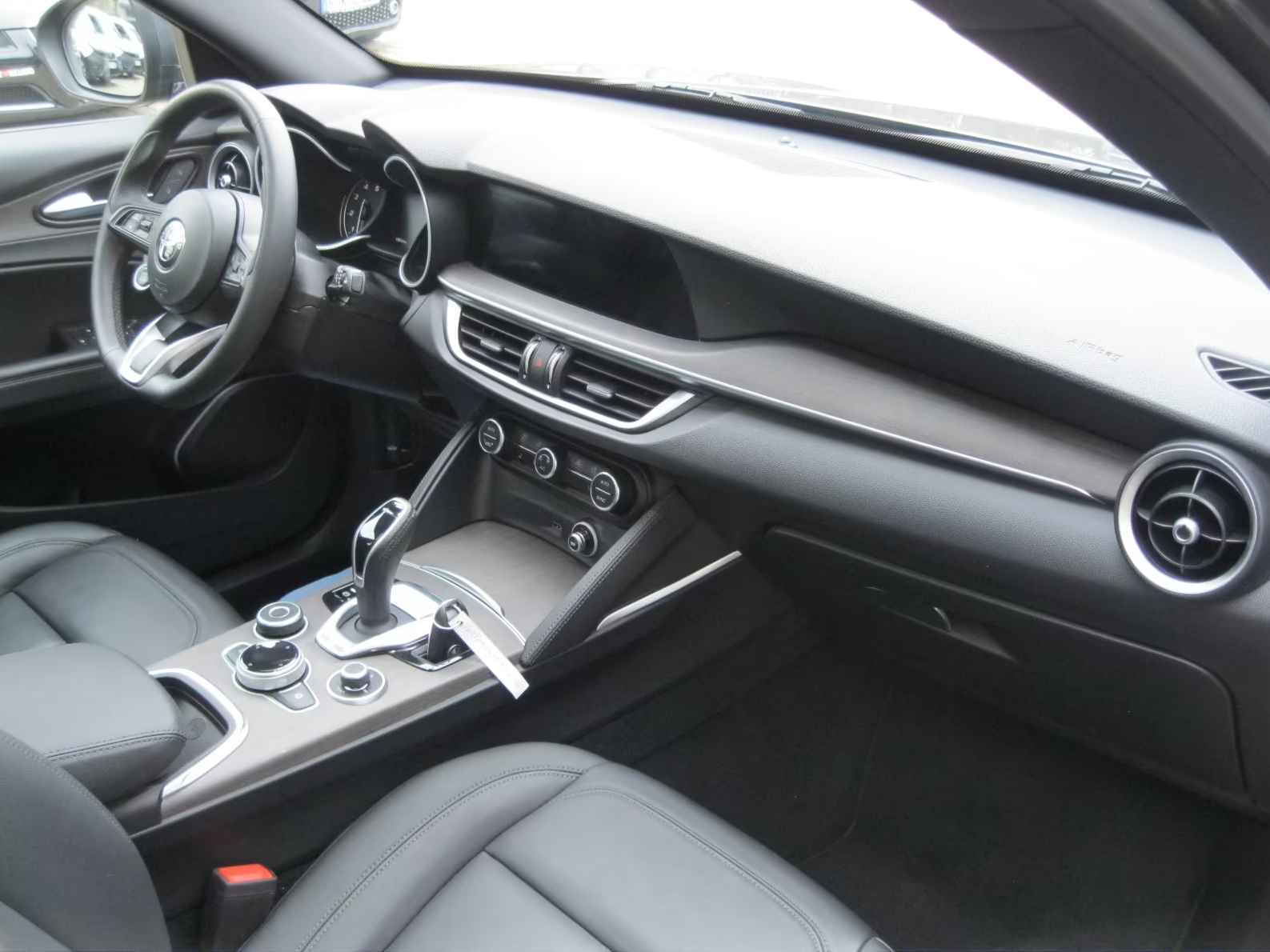 Schitterend uitgevoerde Alfa Romeo Stelvio 2.0T Q4 Ti (206kW/280pk) van 03-2023 met slechts 24.967km. gereden (1e Eig - Unfallfrei) in het Grigio Vesuvio Metallic met een Antraciet Vol-Lederen Interieur die o.a. is uitgerust met: Automatische klimaatregeling met twee zones, Antraciet Vol-Leder Interieur, verwarmde voorstoelen, Dashboard afwerking in natuurlijk eikenhout, Q4 met vierwielaandrijving, 8-traps automatische transmissie, 8,8 inch navigatiesysteem, radio met DAB+, Apple CarPlay/Android Auto, USB/AUX, Bluetooth handsfree systeem. Touchscreen + draaiknopbediening, Electr. Bed. Glazen Panoramadak, 6 airbags, ABS, ESP, botsingswaarschuwingssysteem met noodremfunctie, Bi-xenon koplampen met dynamische bocht- en afslagverlichting & koplampreinigers, Grootlicht-assistentie, Rijstrook-assistentie, Dodehoek-assistentie, Centrale vergrendeling met afstandsbediening, Licht- en regensensor, Adaptieve Cruise Control, Hill Descent control, Alfa DNA rijdynamiekregeling, Parkeersensoren voor en achter incl. Achteruitrijcamera, Elektrische achterklep met handsfree bediening, Keyless Open / Sluit & Startsysteem met startknop op het stuur, Verwarmd Multifunctioneel Lederen stuurwiel, Elektrische stoelverstelling met geheugen voor bestuurdersstoel, Asymmetrisch neerklapbare achterbank, 19 inch lichtmetalen velgen, Inductieve smartphone-laad voorziening, Rijassistentie-pakket: Actief Blind Spot Assist / Active Lane Keeping Assist / Driver Attention Warning / Intelligent Traffic Sign Recognition / Intelligent Speed Control / Traffic Jam Assist / Highway Assist, etc, etc.....