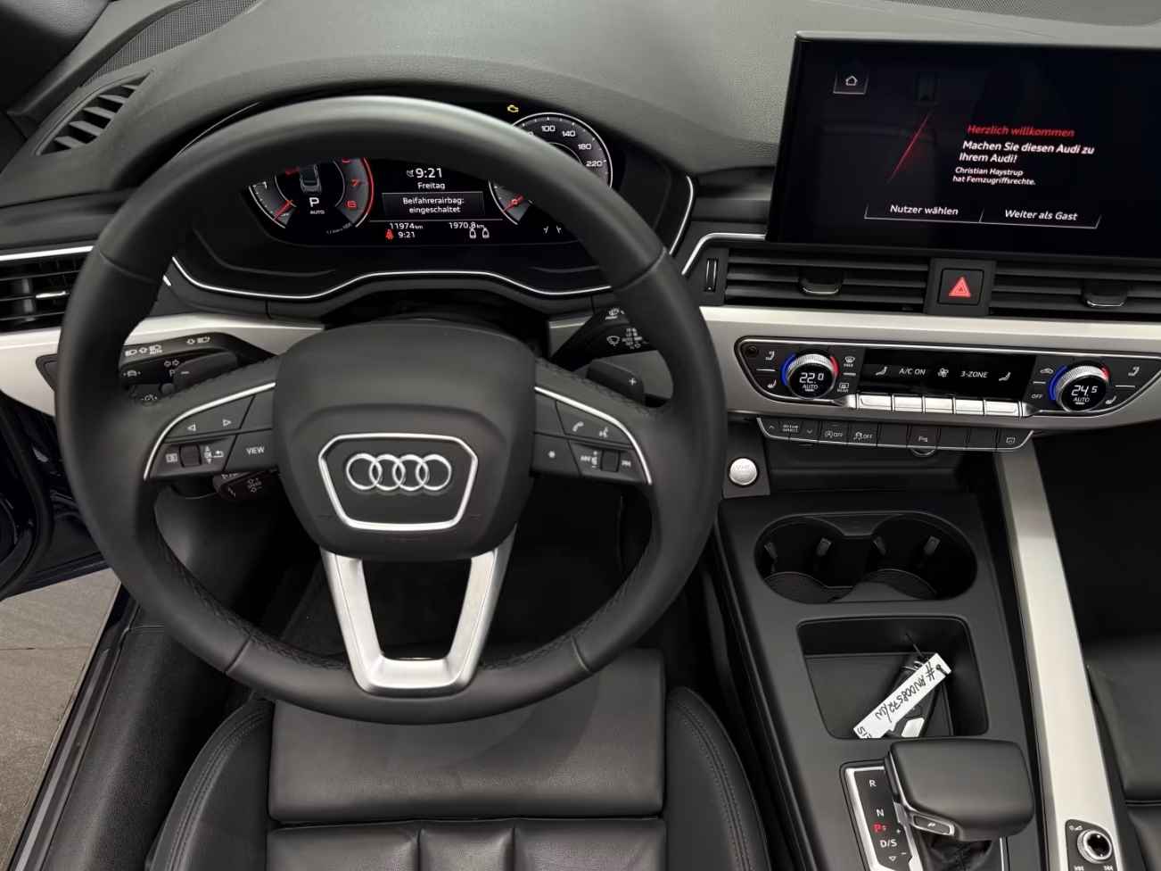 Schitterend Uitgevoerde Audi A5 Cabriolet 40 Tfsi S-Tronic van 06-2024 met 10.703km. gereden in het Navarra Blau Metallic met een Schwarz Lederen Interieur (Sportstoelen) die o.a. is uitgerust met de onderstaande opties & accessoires: (4A3) Verwarmde voorstoelen, (PXB) Matrix LED-koplampen met Audi laserlicht & LED-achterlichten en koplampreinigingssysteem, (6K8) Audi pre sense city, (7K1) Bandenspanningscontrolesysteem, (9ZE) Audi telefooncel, (PYH) Navigatiepakket, (PYG) Smartphone infotainmentpakket, (GB1) LTE-ondersteuning voor Audi telefooncel, (IW3) Audi connect noodoproep & service met Audi connect afstandsbediening & bediening, (QV3) Digitale radio-ontvangst, (9K1) Nekverwarming voor, (4GF) Voorruit met warmte-isolerend en akoestisch glas, (9AQ) 3-zone deluxe automatische airconditioning, (9S9) Audi virtual cockpit plus, (1XW) Multifunctioneel 3-spaaks lederen stuurwiel met Schakelfunctie, (4UF) Airbags voorin / airbag voorpassagier uitschakelbaar, (VL1) Verbeterde voetgangersbescherming, (6XL) Buitenspiegels elektrisch verstelbaar & verwarmbaar, (8K4) Dagrijverlichting, (1G8) Bandenreparatie-set, (4X1) Zij-airbags voor, (3B3) ISOFIX kinderzitje bevestiging en top tether voor de achterbank, (7S1) Winddeflector, (7L8) Start-stopsysteem, (V88) 18-inch L.M. Velgen, Lendesteun Voor, Achteruitrij-camera, Adaptive Cruise Control, Etc, etc......