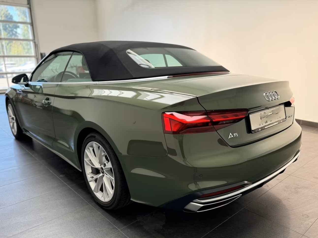 Schitterend Uitgevoerde Audi A5 Cabriolet 40 Tfsi S-Tronic van 04-2024 met 17.056km. gereden in het Distrikt Grün Metallic met een Schwarz Lederen Interieur (Sportstoelen) die o.a. is uitgerust met de onderstaande opties & accessoires: (4A3) Verwarmde voorstoelen, (PXB) Matrix LED-koplampen met Audi laserlicht & LED-achterlichten en koplampreinigingssysteem, (6K8) Audi pre sense city, (7K1) Bandenspanningscontrolesysteem, (9ZE) Audi telefooncel, (PYH) Navigatiepakket, (PYG) Smartphone infotainmentpakket, (GB1) LTE-ondersteuning voor Audi telefooncel, (IW3) Audi connect noodoproep & service met Audi connect afstandsbediening & bediening, (QV3) Digitale radio-ontvangst, (9K1) Nekverwarming voor, (4GF) Voorruit met warmte-isolerend en akoestisch glas, (9AQ) 3-zone deluxe automatische airconditioning, (9S9) Audi virtual cockpit plus, (1XW) Multifunctioneel 3-spaaks lederen stuurwiel met Schakelfunctie, (4UF) Airbags voorin / airbag voorpassagier uitschakelbaar, (VL1) Verbeterde voetgangersbescherming, (6XL) Buitenspiegels elektrisch verstelbaar & verwarmbaar, (8K4) Dagrijverlichting, (1G8) Bandenreparatie-set, (4X1) Zij-airbags voor, (3B3) ISOFIX kinderzitje bevestiging en top tether voor de achterbank, (7S1) Winddeflector, (7L8) Start-stopsysteem, (V88) 18-inch L.M. Velgen, Lendesteun Voor, Achteruitrij-camera, Adaptive Cruise Control, Etc, etc......