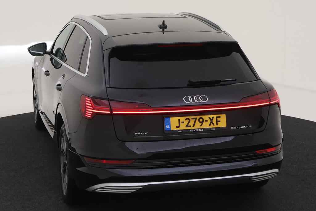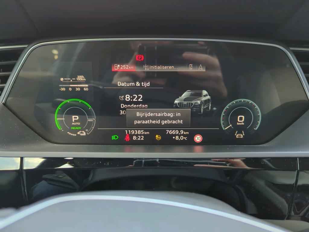 U voelt de onbeperkte kracht van elektrische aandrijving, elke keer als u op weg gaat met deze Audi e-tron. Het is een auto uit 2020, hij heeft 119481 kilometer gelopen. Schoon, stil en fiscaal vriendelijk: met de elektromotor is het zuinig zoeven! De elegante lijnvoering wordt versterkt door subtiele S-Line styling details. De krachtige motor geeft deze Audi uitstekende prestaties. Een fraai lederen interieur, dat in daglicht baadt dankzij het elektrisch bediende glazen panorama dak. En voor 'handsfree' in- en uitladen vindt u aan de achterzijde de elektrisch bedienbare achterklep. Laat de kou maar komen! U zit altijd goed met de heerlijke stoelverwarming. Ribbels en hobbels in de weg worden royaal gladgestreken door de aanwezige luchtvering. Tot de voorzieningen van deze auto behoren 20 inch lichtmetalen velgen, LED koplampen, adaptief dempingsysteem, warmtewerend glas, in delen neerklapbare achterbank en LED-achterlichten.