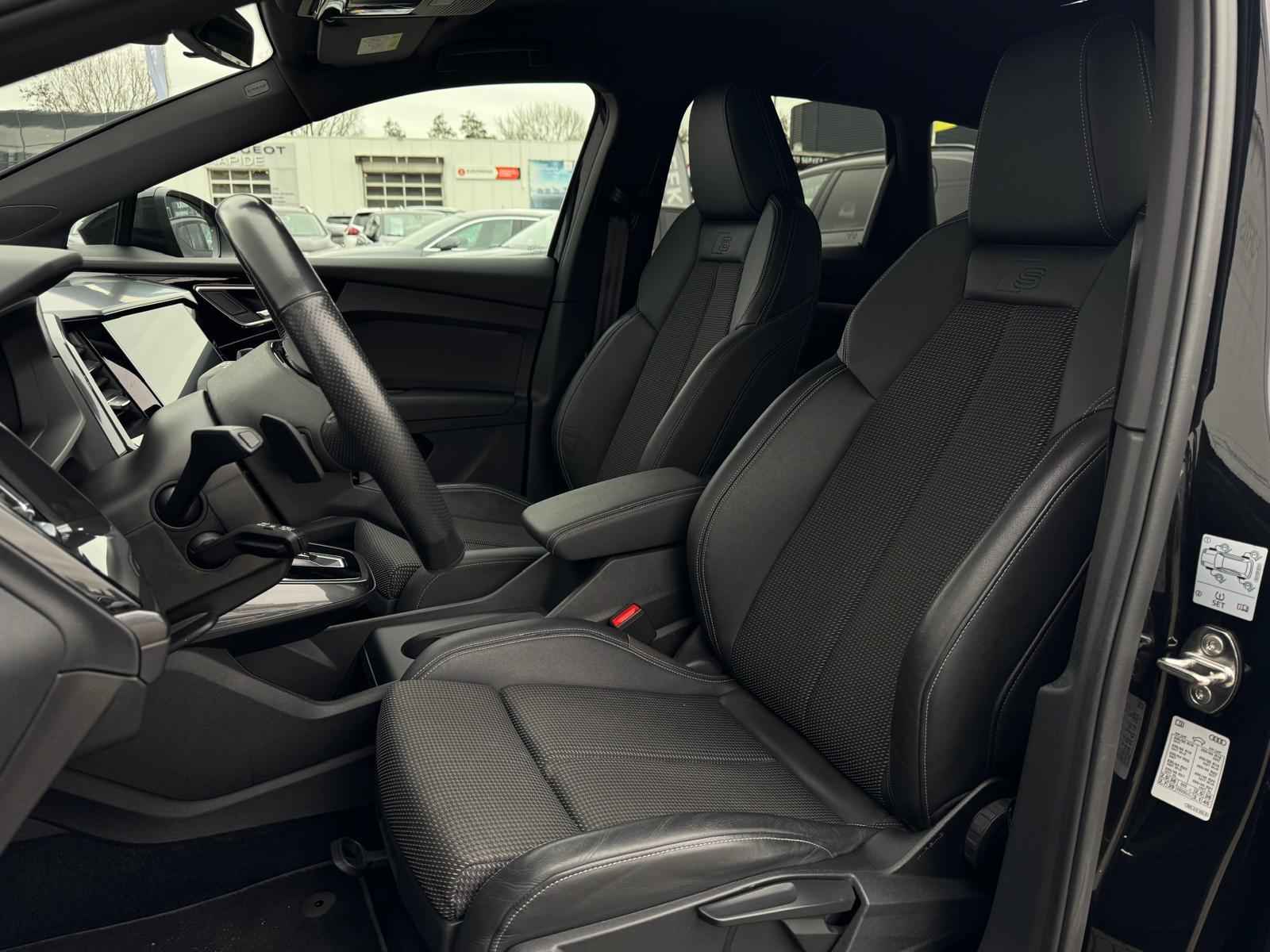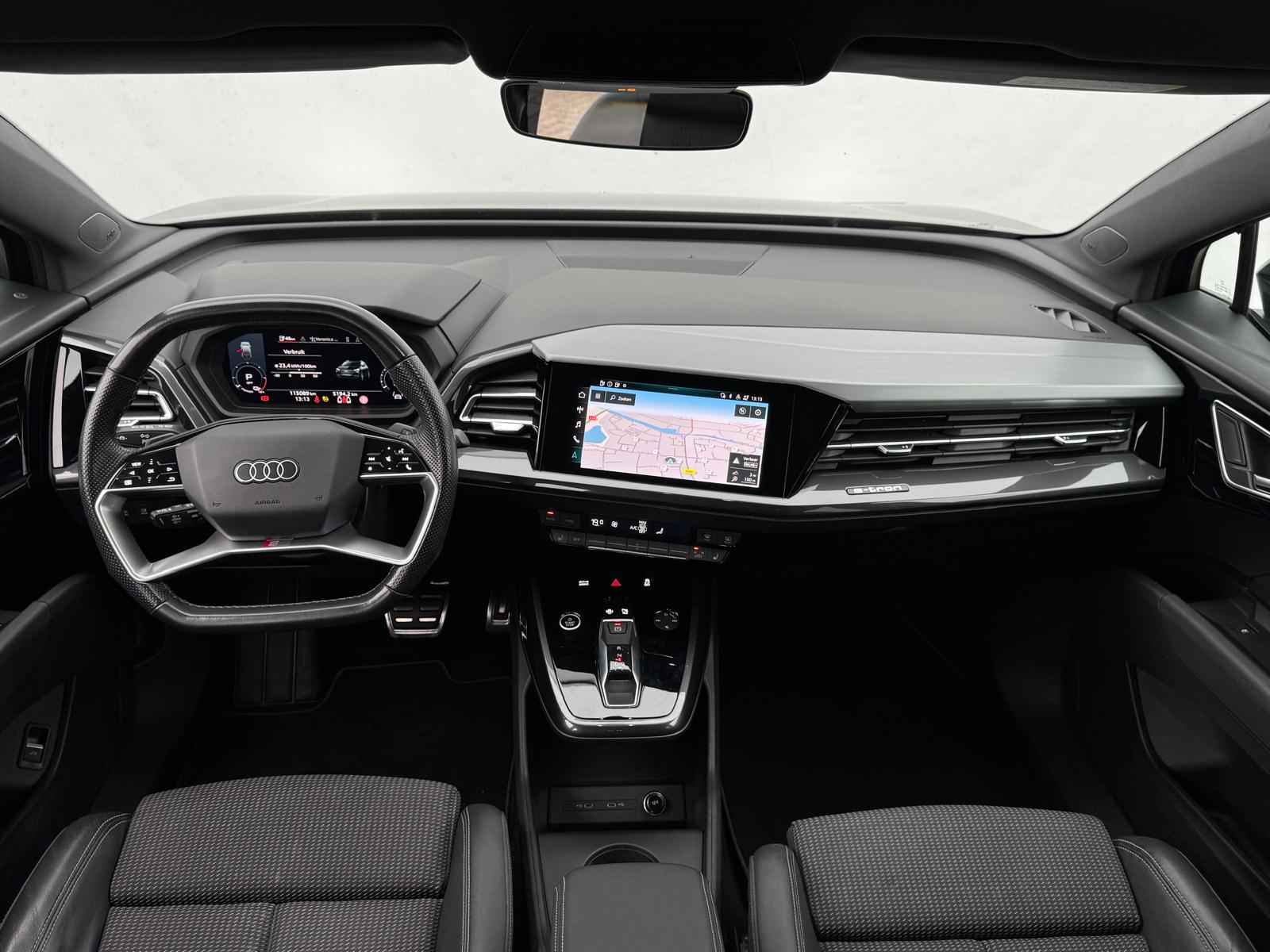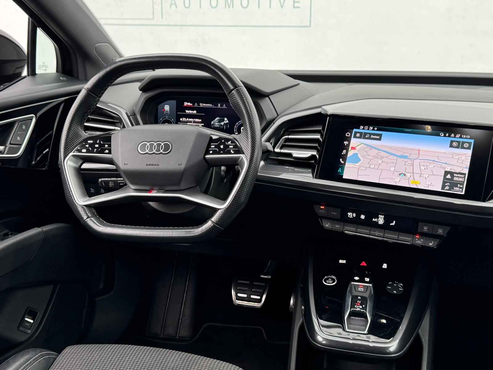 Een nieuw tijdperk breekt aan. Emissievrij rijden is niet langer toekomstmuziek met deze elektrische Audi Q4 e-tron. Fiscaal aantrekkelijk is de elektromotor, waarmee u niet alleen stil maar ook uitermate pittig kunt rijden. S-Line styling benadrukt de sportieve functionaliteit van het ontwerp. De krachtige motor geeft deze Audi uitstekende prestaties. Inladen is een eitje met de elektrisch bedienbare achterklep. En voor een frisse wind tijdens de rit is er het elektrisch bediende glazen panorama dak. De verwarmbare voorstoelen zijn een weldaad voor rug en schouders. In deze sportstoelen voel je je één met je auto. De koplampen zijn voorzien van de allernieuwste lichttechnologie: matrix LED-verlichting. In deze auto profiteert u onder andere ook van: 20 inch lichtmetalen velgen, sportonderstel, adaptief dempingsysteem, donker getint glas achter, neerklapbare achterbank en LED-achterlichten.