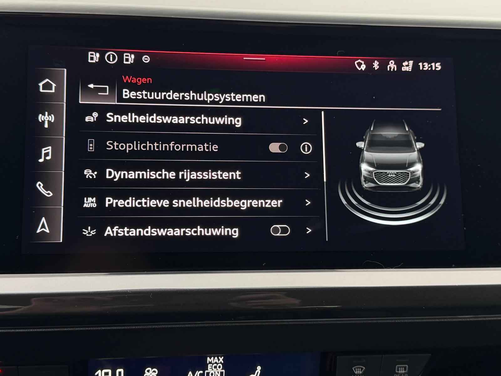 Tijdens de rit wordt u als bestuurder ondersteund door verschillende systemen die de weg en uw omgeving in de gaten houden. Belangrijk voor uw veiligheid en die van uw passagiers is de verkeersbord-detectie in deze auto. Indien u onbedoeld de rijstrook lijkt te verlaten, reageert het Lane-keeping systeem meteen en corrigeert.