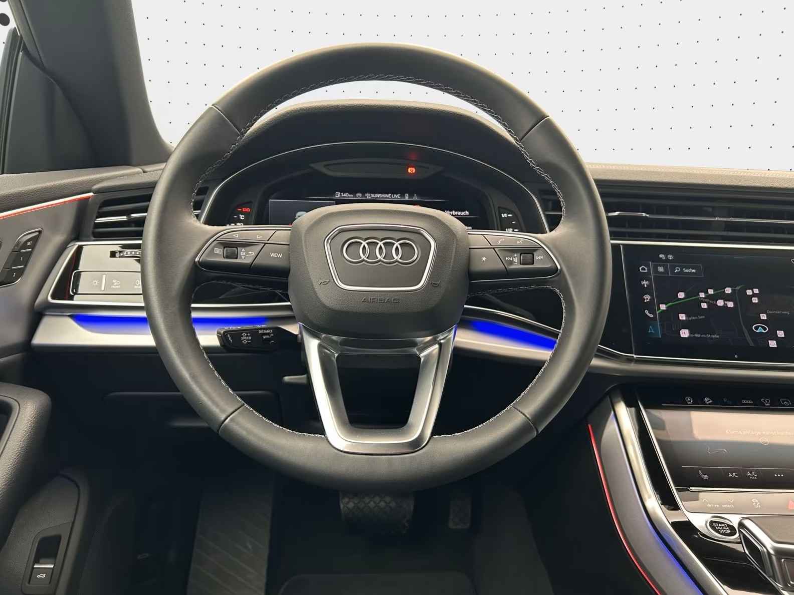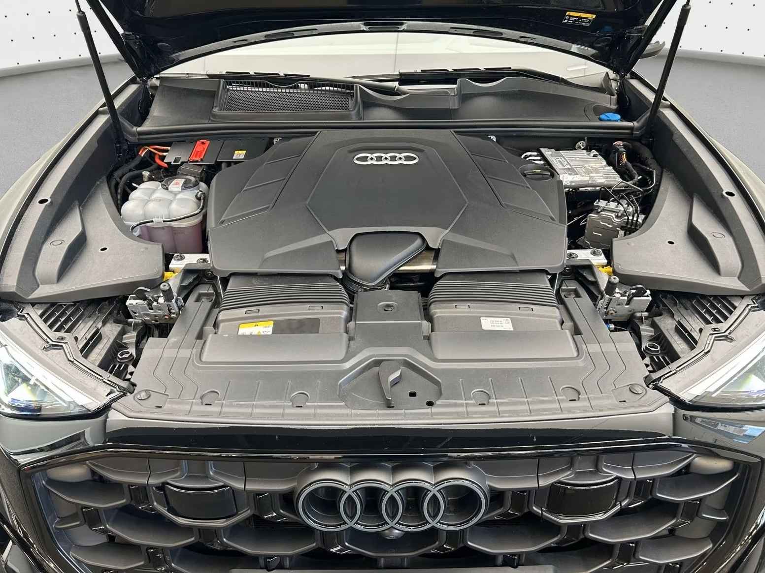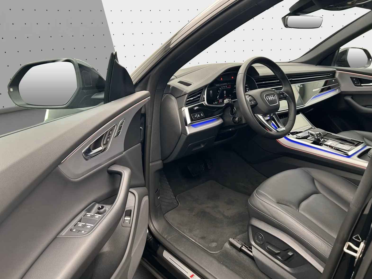 UNIEK! Audi Q8 55 Tfsi - e Quattro S-LINE (290kW / 394pk) van 01-2025 met 30.135km. gereden in het Mythos Schwarz Metallic met een Schwarz "Cricket" Vol-Leder Interieur die o.a. is voorzien van: Audi virtual cockpit plus, Adaptieve luchtvering, Head-up display, Audi sound systeem, Hold assist, Adaptieve cruise assist met snelheidsbegrenzer, efficiency assist, uitwijk-assistent en afslag-assistent, Waarschuwing voor rijstrookwisseling met uitstapwaarschuwing en waarschuwing voor kruisend verkeer achter, Audi pre sense Voor & Achter, Adaptieve cruise assist met noodhulp, Camera gebaseerde verkeersbordherkenning, Parkeerhulppakket met Park Assist plus, Stads assistentie-pakket, Toer assistentie-pakket, Bandenspanningscontrole-systeem, Digitale radio-ontvangst, Audi Application Store en smartphone-interface, Audi connect navigatie & infotainment, Audi telefoonbox, USB-aansluitingen met laadfunctie achter, LTE-ondersteuning voor Audi telefoonbox, Frontairbags, passagiersairbag uitschakelbaar, Kinderzitje bevestigingspunten ISOFIX en Top Tether voor achterin Stoelen, Audi Drive Select, Elektromechanische stuurbekrachtiging, Audi connect Noodoproep & Service inclusief Audi connect Remote & Control, tiptronic transmissie, Adaptieve ruitenwissers met geïntegreerde sproeiers, 4-zone automatische klimaatregeling, Koplampreinigingssysteem, Matrix LED-koplampen, Parkeer-assistent met Park Aid Plus, Antidiefstal-alarmsysteem, Elektrisch verstelbare - verwarmbare en inklapbare buitenspiegels automatische dimmend met geheugenfunctie, Zij-airbags voor en achter en hoofdairbag-systeem, Comfortsleutel met sensorgestuurde bagageruimteontgrendeling en Safelock, ISOFIX-kinderzitje bevestigingen voor de voorpassagiersstoel, LED-achterlichten, Omgevingscamera's, Comfort middenarmsteun voor, Zilvergrijze sierlijsten in diamantlook, Automatisch dimmende binnenspiegel, Multifunctioneel 3-spaaks lederen stuurwiel met Schakelpaddles, Hoogglans zwarte bedieningsknoppen met haptische feedback en aluminiumlook interieur, Elektrisch verstelbare bagageruimteafdekking, Achterbank plus, Elektrisch verstelbare voorstoelen met geheugenfunctie voor de bestuurdersstoel, Cricket lederen bekleding, 4-voudig verstelbare lendensteunen voor de voorstoelen, Warmte-isolerende voorruit, Elektrisch bedienbare achterklep, Black stylingpakket plus, Zwarte dakrails, RVS laaddrempelbescherming, electr. uitklapbare Trekhaak, Privacy glas vanaf de B-Style / Donkere zonwerende beglazing, Black stylingpakket, 21-inch L.M. Velgen in 5-V-spaaks S-design - grafietgrijs, gepolijst -10.0Jx21, met banden 285/45 R21, Verwarmde voor- en achterstoelen, S-line bumpers, Ambitiente verlichtingspakket plus, Multifunctionele camera, S-line exterieurpakket, Singleframe grille in zwart, Bovenste interieurelementen met contrasterende stiknaden, etc, etc....