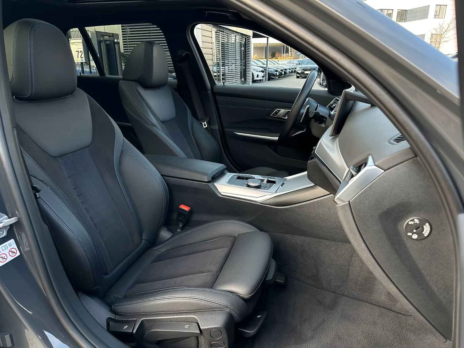 Schitterend uitgevoerde BMW 320d Touring xDrive M-SPORT van 07-2023 met 39.898km gereden (1e Eig - Unfallfrei) in de Speciale "M" Exterieur Kleur Dravit Grau Metallic met een Schwarz Hallf-Leder / Alcantara M-SPORT Interieur (Sportstoelen) die o.a. is voorzien van: Alarmsysteem, Elektrisch inklapbare buitenspiegels, Auto Hold, Automatisch dimmende binnen- & buitenspiegels, Boordcomputer, Parkeerhulp: voor en achter PDC incl. • Achteruitrijcamera, Intelligente Personal Assistant, electr. uitklapbare Trekhaak, Elektrische ramen voor en achter, Dynamische stabiliteitsregeling (DSC), Grootlicht-assistent, Privacy Glas vanaf de B-Style, Akoestisch Glas, Automatische klimaatregeling met 3 zones en automatische luchtrecirculatie, Automatische klimaatregeling achter, Adaptieve led-koplampen, Lederen Multifunctioneel stuurwiel met Schakelpaddles, Navigatie Professional, BMW Breedbeelddisplay, Mistlampen, Parkeer-assistent, Licht- & Regensensor, Bandenspanningscontrolesysteem (TPMS), Variabele sportbesturing, Spraakbediening, Handsfree telefoonsysteem met USB-aansluiting, Adaptive Cruise Control, electr. bed. Glazen Panoramadak, electr. te bed. Achterklep, Centrale vergrendeling met afstandsbediening, Opbergpakket, ConnectedDrive Services Pakket, Hemelbekleding in antraciet, Individuele hoogglans Shadow Line uitgebreid, LED-mistlampen, M Aerodynamica Pakket, M Sportonderstel, 19-inch lichtmetalen velgen in 5 Dubbelspaaks design - Schwarz, HiFi-systeem, Innovatie Pakket, Middenarmsteun: voor en achter, Neerklapbare achterbank met Doorlaadsysteem, Stoelverwarming, Lendensteun, Driving Experience Control, ISOFIX kinderzitjebevestigingen, Hoofdairbag-systeem, Intelligent Emergency Call inclusief TeleServices, Zonneschermen voor de achterportierramen, Standverwarming, etc, etc....