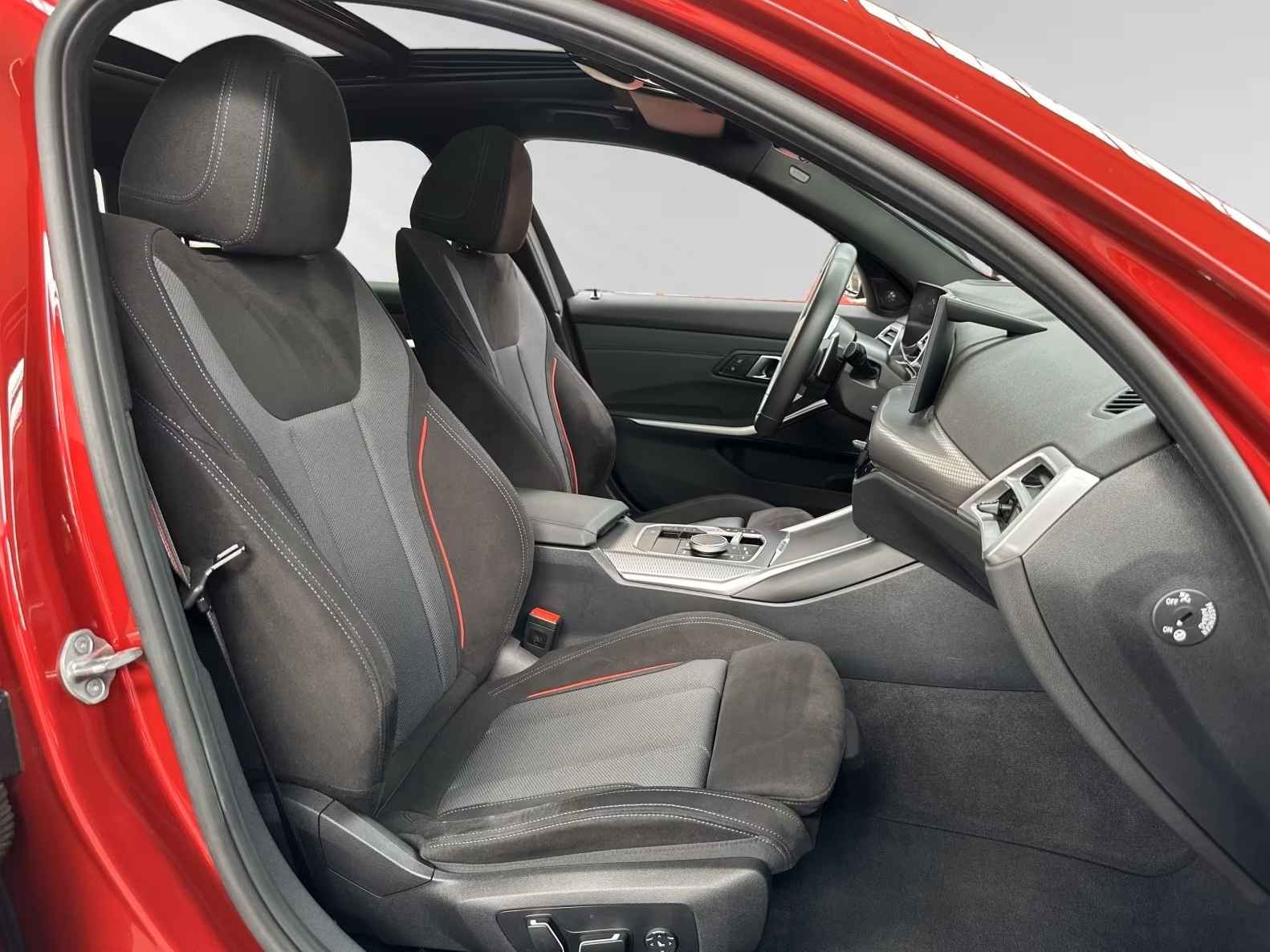 Super Fraaie BMW 330e xDrive Touring M-SPORT (LCi) van 11-2024 met 24.900km. gereden (1e EIG - Unfallfrei - Ex BMW AG) in het Fire Red Metallic met een Antraciet Alcantara / Stof M-SPORT Interieur (Sportstoelen) die naast de toch al rijke standaard uitrusting o.a. is uitgerust met: Adaptief M-Technic Sportonderstel, Steptronic-8 Sportautomaat, Variabele sportstuurinrichting, XtraBoost, Opbergpakket, ConnectedDrive Services (abonnement), ConnectedPackage Professional (abonnement), Bagageruimtepakket, Innovatiepakket, M Aerodynamica-pakket, M Sport-pakket, BMW IconicSounds Electric (geluidsgenerator), Electr. uitklapbare Trekhaak, Dakrails, Grille & Raamomlijsting in hoogglans zwart (Hoogglans Shadow-Line Uitgebreid), Electr. Bed. Glazen Panoramadak, Driving-assistent, Noodoproepsysteem, Head-up display, Parkeerassistent Plus incl. Achteruitrijcamera, Rijstrookwissel-waarschuwing, TeleServices, Exterieurafwerking: "BMW Individual" hoogglans Shadow Line (uitgebreide scope) & hemelbekleding Antraciet, Parkeerassistent met zelfsturend systeem, Neerklapbare hoofdsteunen achter, Automatisch dimmende binnen- en buitenspiegels, Keyless entry, Automatische klimaatregeling 3-zones, Comfort Access (open- en sluitsysteem), Lederen M technik Sportstuur, Verwarmde voorstoelen, electr. verstelbare voorstoelen L.V. incl. Memory, Zonneschermen voor de achter zijruiten, Zonwerend glas incl. Privacy Glas vanaf de B-Style, Sportstoelen voor, BMW Live Cockpit Professional, DAB-tuner, Harman & Kardon luidsprekersysteem, 19-inch L.M. Velgen - voor/achter: 8x19 / 8,5x19 in "Double-Spoke 791 M- Jet Black" incl. Runflatbanden & Wielsloten, M-Sportremmen in Rood Hoogglans, M-Veiligheidsgordels, Stoelbekleding: M Performtex / Stoff-Kombination schwarz, Alarm, etc, etc....