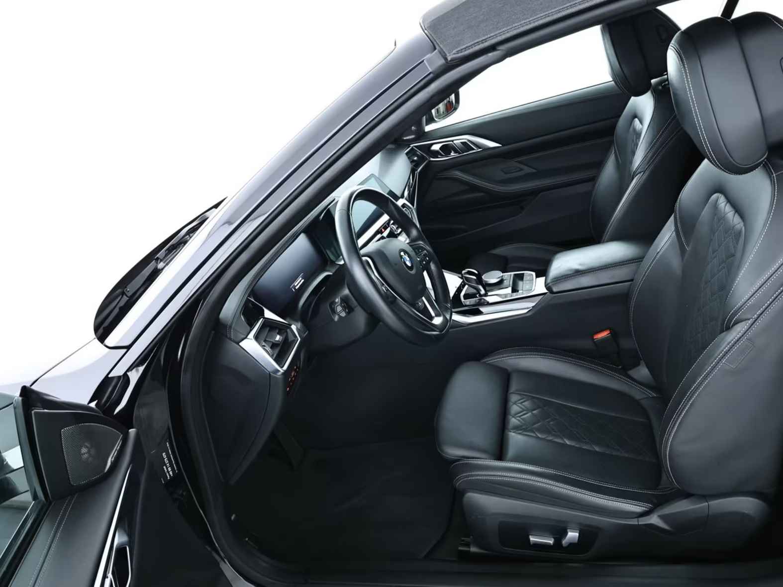 Super Fraaie BMW 430iA Cabriolet van de 11e maand 2021 met origineel 23.230km. gereden (1e Eig - Unfallfrei - Vol. BMW Onderh) in het Saphire Schwarz Metallic met een "BMW Individual" Schwarz (Grijze Stiksels) Vol-Leder Interieur (Sportstoelen) die o.a. is voorzien van: Actieve ventilatie voor de voorstoelen, Nekverwarming, Driving Assistent, Head-up display, Keyless / Comforttoegang (open- en sluitsysteem), Verwarmd Multifunctioneel lederen Sportstuur, 18-inch L.M. Velgen in V-Spaak "780" in Orbit Grau, Parkeer-assistent incl. Achteruitrijcamera, Harman & Kardon Soundsysteem, Sportonderstel (M-Technic), Deactivering passagiersairbag, Airbags bestuurder/passagier, Elektrisch verstelbare - verwarmde & inklapbare buitenspiegels, Uitrustingspakket: Connected Professional, BMW Live Cockpit Professional (navigatie), DAB-tuner (digitale radio-ontvangst), Doorlaadsysteem (middenarmsteun achter), Dynamische tractiecontrole (DTC), Attention Assist, Handsfree systeem met USB-interface, Cruise Control met remfunctie, Bekerhouders voor en achter, Automatische transmissie Steptronic-8, LED-achterlichten, Automatisch dimmende binnenspiegel, Isofix-bevestigingspunten voor kinderzitjes achterin, Automatische klimaatregeling met 3 zones en automatische luchtcirculatie, Knie-airbag bestuurder, Hoofdairbag-systeem voor & achter, Licht- en regensensor, LED-koplampen, Servicesysteem: ConnectedDrive Services / Intelligent Emergency Call incl. TeleServices, Elektrisch verstelbare & verwarmde voorstoelen (bestuurdersstoel met geheugenfunctie), Sensatec dashboard, etc, etc.....