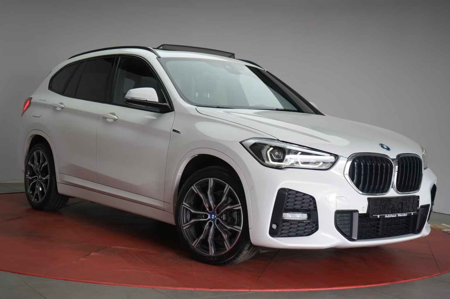 Super Fraaie BMW X1 xDrive 25e M-SPORT van 04-2022 met 63.998km. gereden in het Alpin Weiss III met een Antraciet Half Leder M-SPORT Interieur (Sportstoelen) die o.a. is uitgerust met: (0205) Automatische transmissie, (0235) Afneembare Trekhaak, (0249) Multifunctioneel stuurwiel, (02VB) Bandenspanningsindicator, (0316) electr. Bed. Achterklep, (0337) M Sportpakket, (03DZ) Verwijdering van extra exterieurbelettering, (0402) Elektrisch Bed. Glazen Panoramadak, (0431) Automatisch dimmende binnenspiegel, (0481) Sportstoelen Voor, (0493) Opbergpakket, (04LU) interieurlijsten in Hoogglans zwart met parelchroomaccenten, (04T1) Laadkabel (modus 2), (0508) Parkeersensoren (PDC), (0544) Cruise Control met remfunctie, (0563) Verlichtingspakket, (05A2) LED-koplampen, (05DA) Uitschakelbare passagiersairbag, (0654) DAB-tuner (DAB+-compatibel), (06AE) Teleservices, (06AM) Real-time verkeersinformatie, (06UN) Navigatie, (0715) M Aerodynamicapakket, (0775) Hemelbekleding in antraciet, (07M9) M Shadow Line met uitgebreide functies, (08TF) Active Voetgangersbescherming, (09BD) Business Pakket, (02VG) Performance Control, (0322) Comfort Access, (03MC) M Shadow Line Dakrails, (0420) Getint Glas incl. Privacy Glas vanaf de B-Style, (0473) Armsteun voor, (0488) Lendensteun voor, (0494) Verwarmde Stoelen voor, (04U9) Akoestische Voetgangersbescherming, (0534) Automatische Klimaatregeling, (05A1) LED Mistlampen, (05AV) Active Guard, (05DP) Parkeer-assistent, (06AC) Intelligente Noodoproep, (06AK) Connected Drive Services, (06AU) Connected eDrive Services, (0710) M lederen stuurwiel, (0760) Hoogglans Shadow Line, (07LF) M Sport model, etc, etc.....