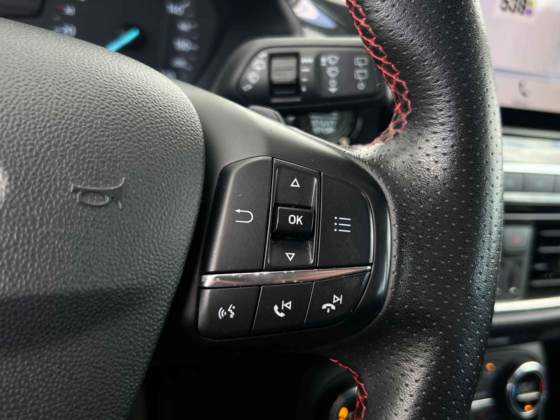 Spraaksturing luistert naar uw stem en bedient de belangrijkste voertuigfuncties. Uw smartphone is tegenwoordig de sleutel tot heel veel. Ook voor deze auto. Remote services, noemen we dat. Waar u ook bent, contact houden is een eitje. Geen betere plek om naar goede muziek te luisteren dan in de auto. Daarom treft u hier het high performance audiosysteem aan! Het full map navigatiesysteem zorgt ervoor dat u altijd de juiste en snelste route vindt. Achter het stuur van deze Ford bent u niet alleen. De auto kijkt als het ware met u mee tijdens de rit. De regensensor schakelt de ruitenwissers in als het nodig is en de automatisch inschakelbare verlichting doet de lichten voor u aan. Ook is de Ford uitgerust met: cruise control, airconditioning, automatisch dimmende binnenspiegel, lederen stuur, centrale deurvergrendeling met afstandsbediening en boordcomputer.