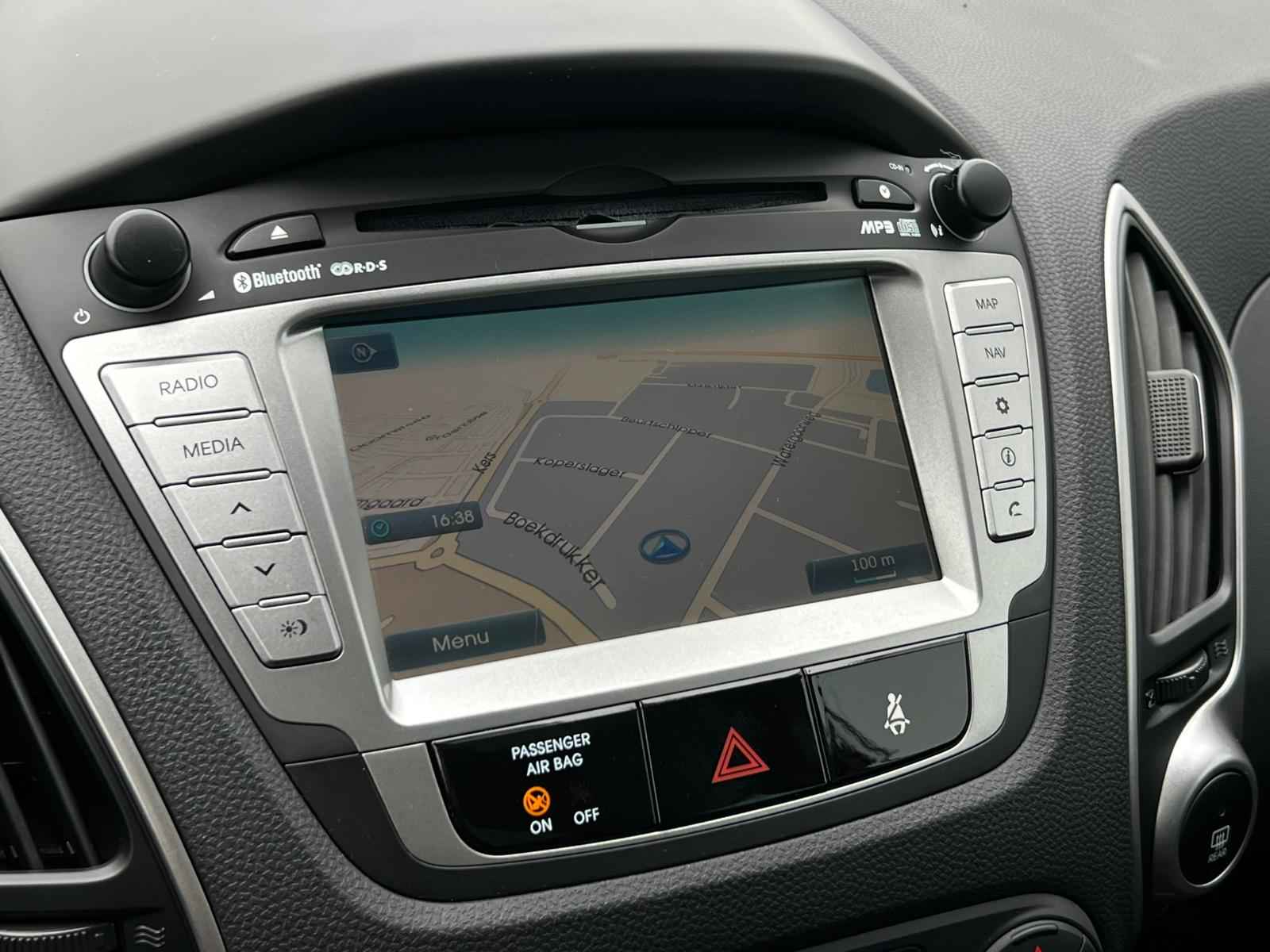 Strak inparkeren wordt een fluitje van een cent door de achteruitrijcamera. Prettig, altijd weten waar je moet zijn en hoe lang de rit nog duurt met het full map navigatiesysteem. De electronic climate control zorgt onder alle omstandigheden voor een prettige temperatuur. Met de audiobediening op het stuur bedient u het audiosysteem zonder uw ogen van de weg te halen. In deze Hyundai kunt u zich concentreren op het verkeer, terwijl de auto de omgeving voor u in de gaten houdt. Een automatisch inschakelbare verlichting zorgt dat de verlichting aangaat als het donkerder wordt - in tunnels bijvoorbeeld - en de regensensor schakelt de ruitenwissers in als het nodig is. U hoeft er niets aan te doen. Deze auto is voorzien van cruise control, automatisch dimmende binnenspiegel, lederen stuur, centrale deurvergrendeling met afstandsbediening, bagage afdekhoes en boordcomputer.