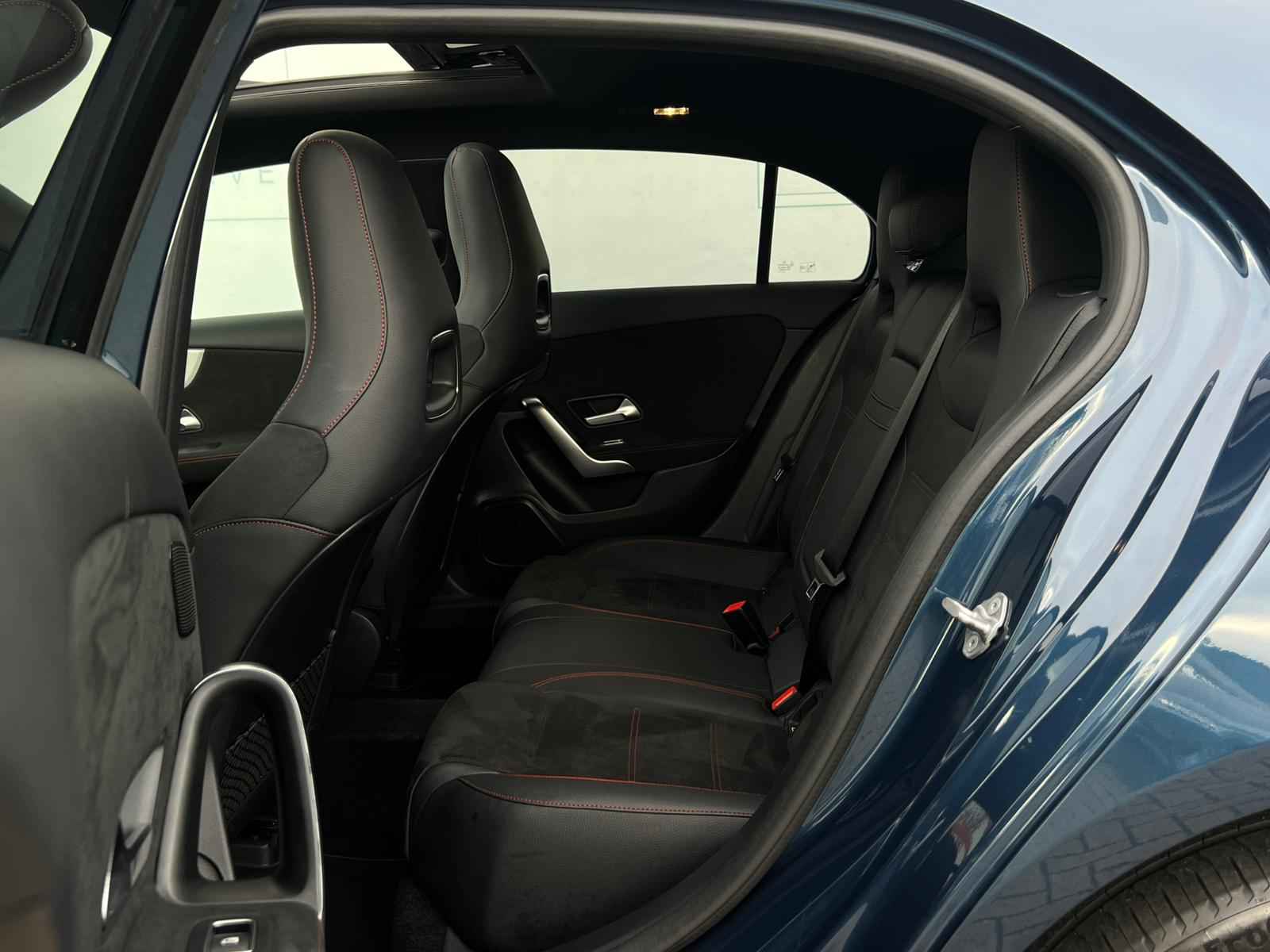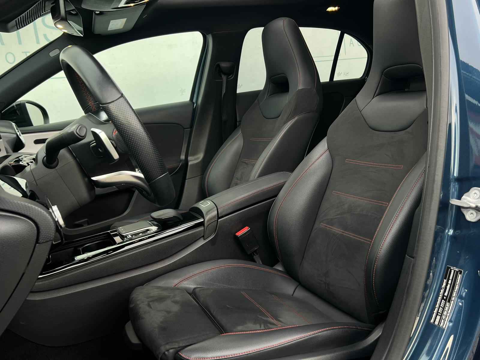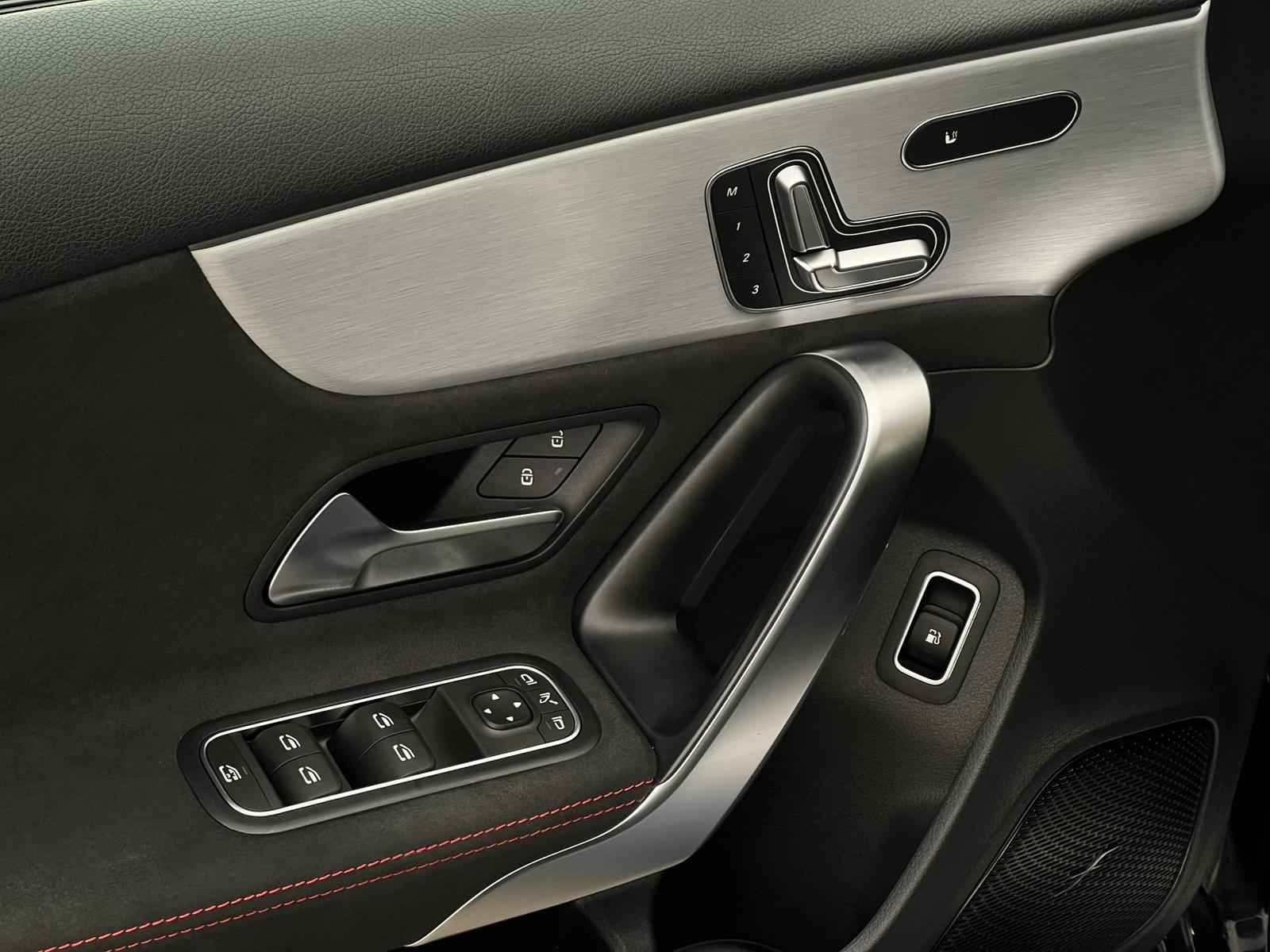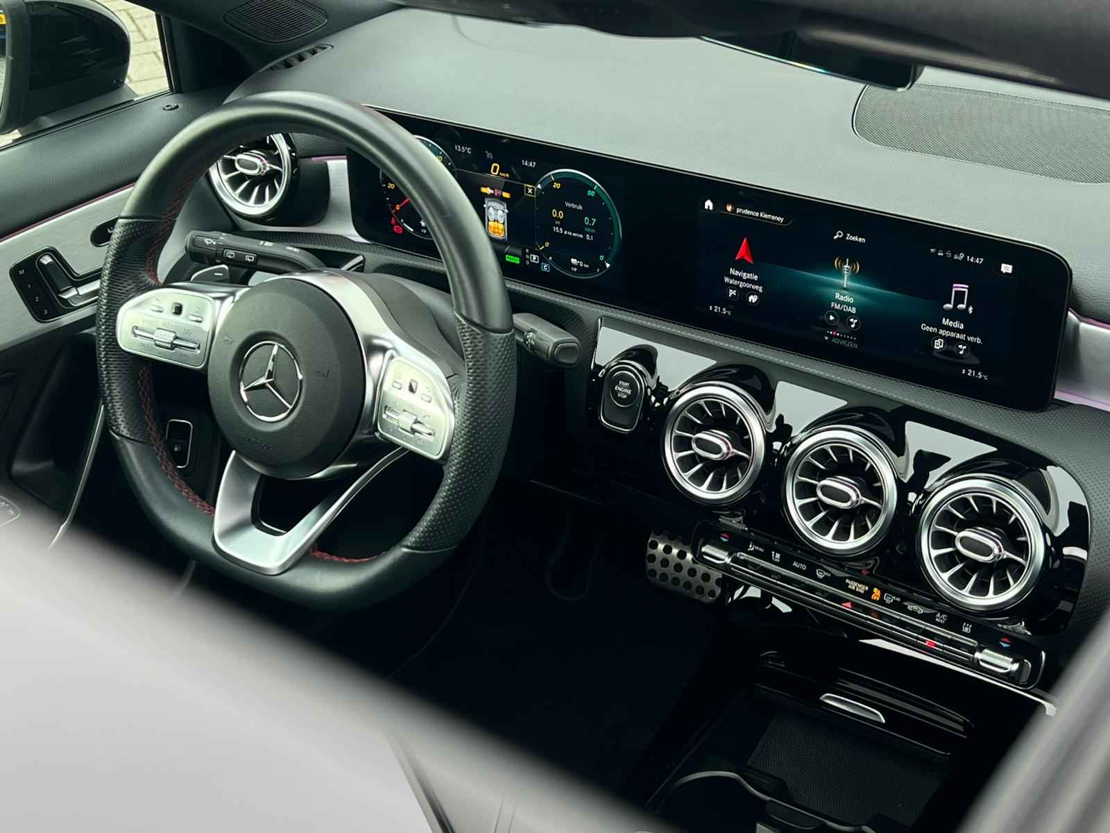 U ziet het al aan de buitenkant en u voelt het zodra u de krachtige motor start, deze sportieve Mercedes-Benz A-klasse is gemaakt om prestaties te leveren. We hebben het hier over een dealeronderhouden auto uit 2020, hij heeft 59729 kilometer gelopen. Het elegante exterieurdesign krijgt een sportieve impuls met het AMG-styling pakket. Met zijn benzinemotor en automatische transmissie is dit een prima auto voor nog vele kilometers. U past de stoelen moeiteloos aan, ze zijn elektrisch in te stellen en hebben bovendien een geheugen. Volop licht en ruimtelijk gevoel geeft het elektrische bediende glazen panoramadak. Koplampen voorzien van de allernieuwste lichttechniek, matrix LED-verlichting. Tot de uitrusting behoren ook 17 inch lichtmetalen velgen, AMG-styling, warmtewerend glas, in delen neerklapbare achterbank en verstelbare lendensteunen.