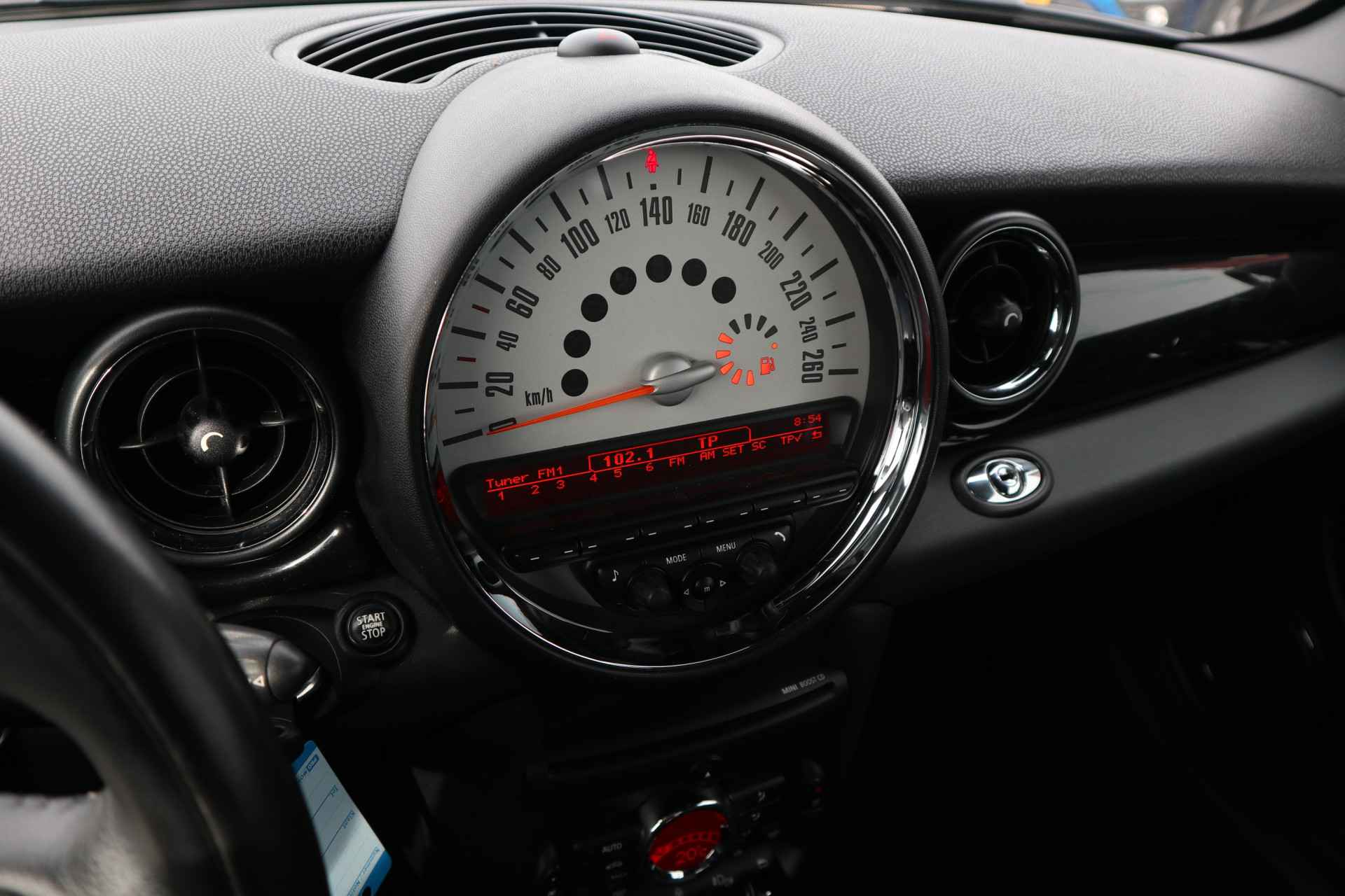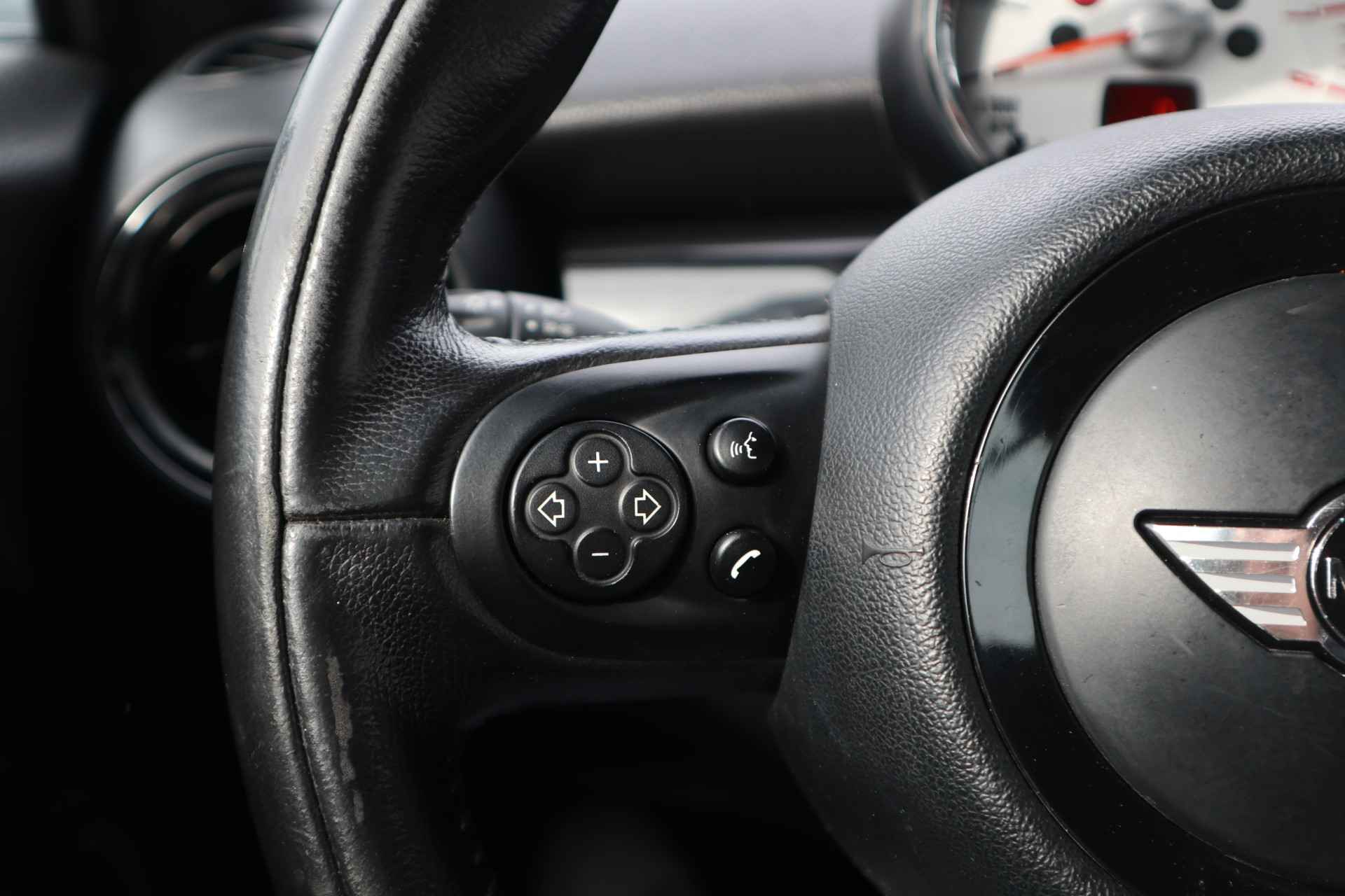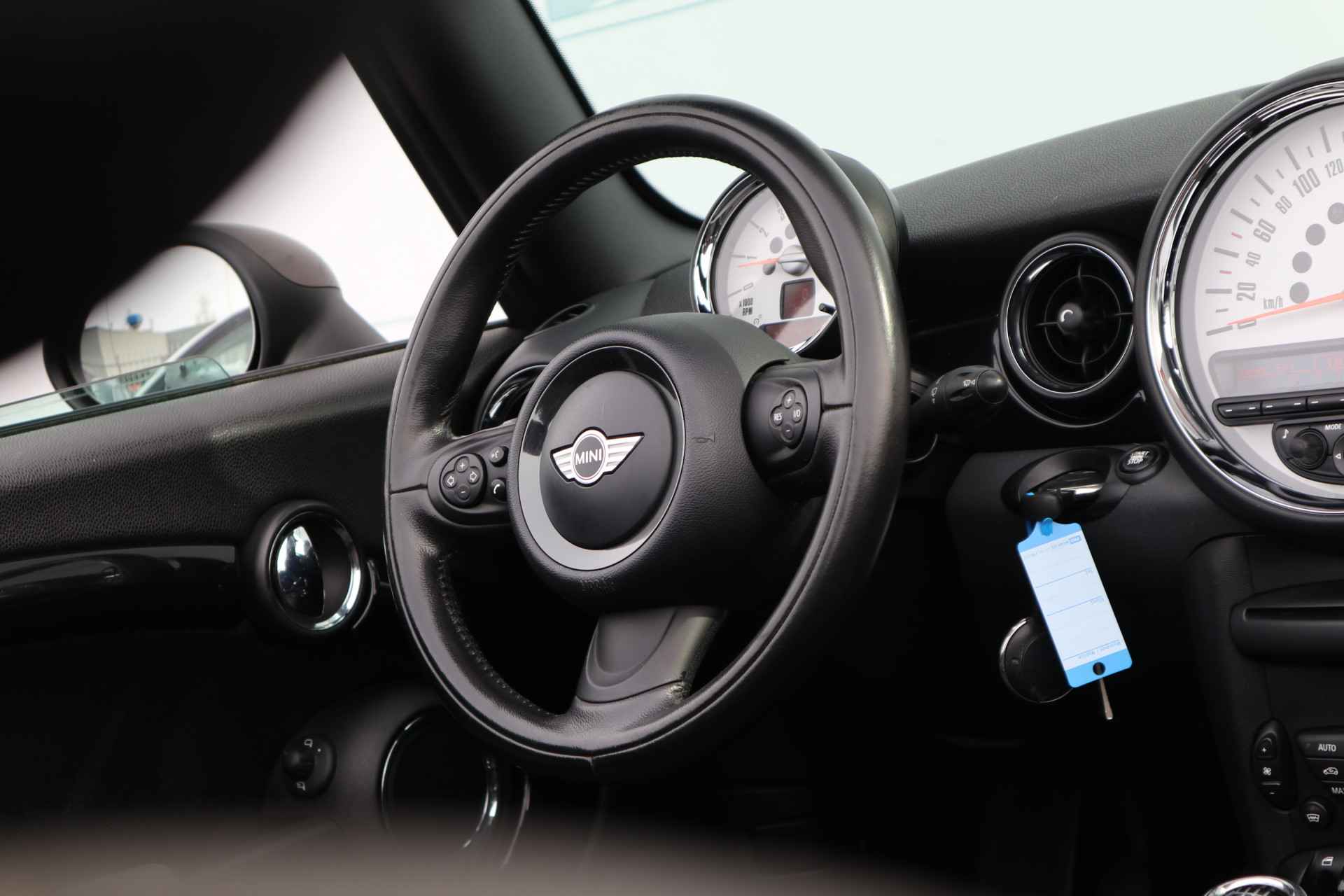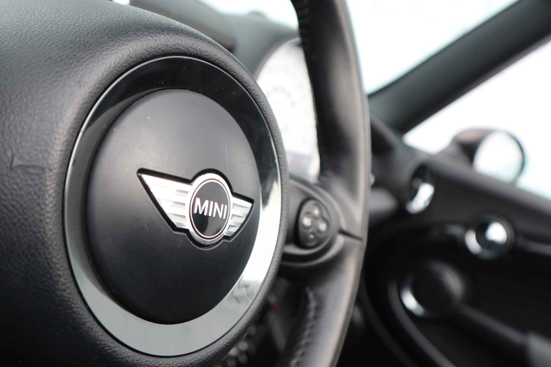 Automatische airconditioning verwarmt of koelt het interieur met een druk op de knop. Kom-maar-kom-maar...ho! Zo eenvoudig is het voordeel van parkeersensoren. En zo behulpzaam! Om de veiligheid onderweg te verhogen, heeft deze MINI zowel een automatisch inschakelbare verlichting als een regen- en lichtsensor aan boord, zodat hij zelf de verlichting en de ruitenwissers kan inschakelen. Deze auto is voorzien van buitentemperatuurmeter, lederen stuur, centrale deurvergrendeling met afstandsbediening en boordcomputer.
