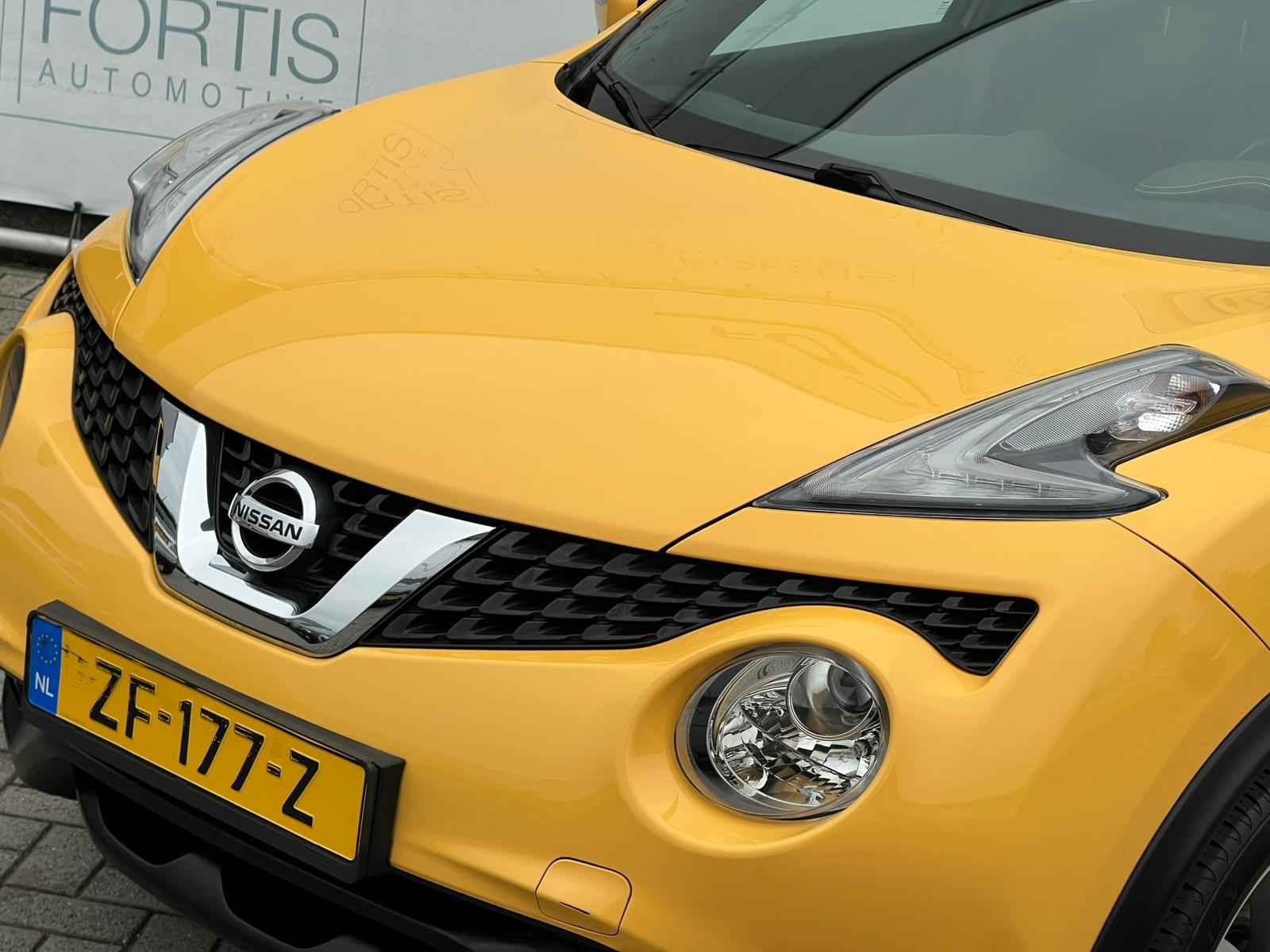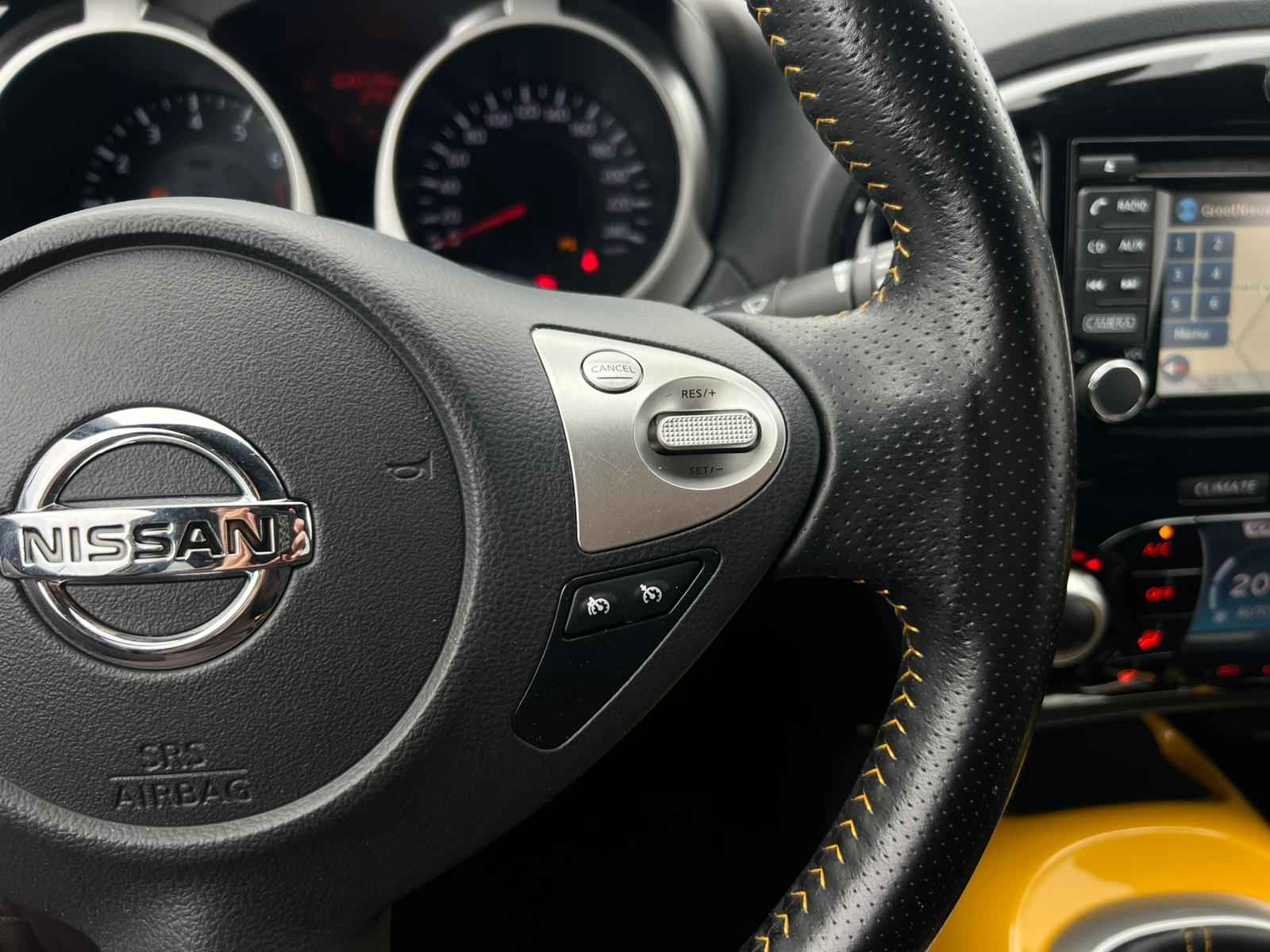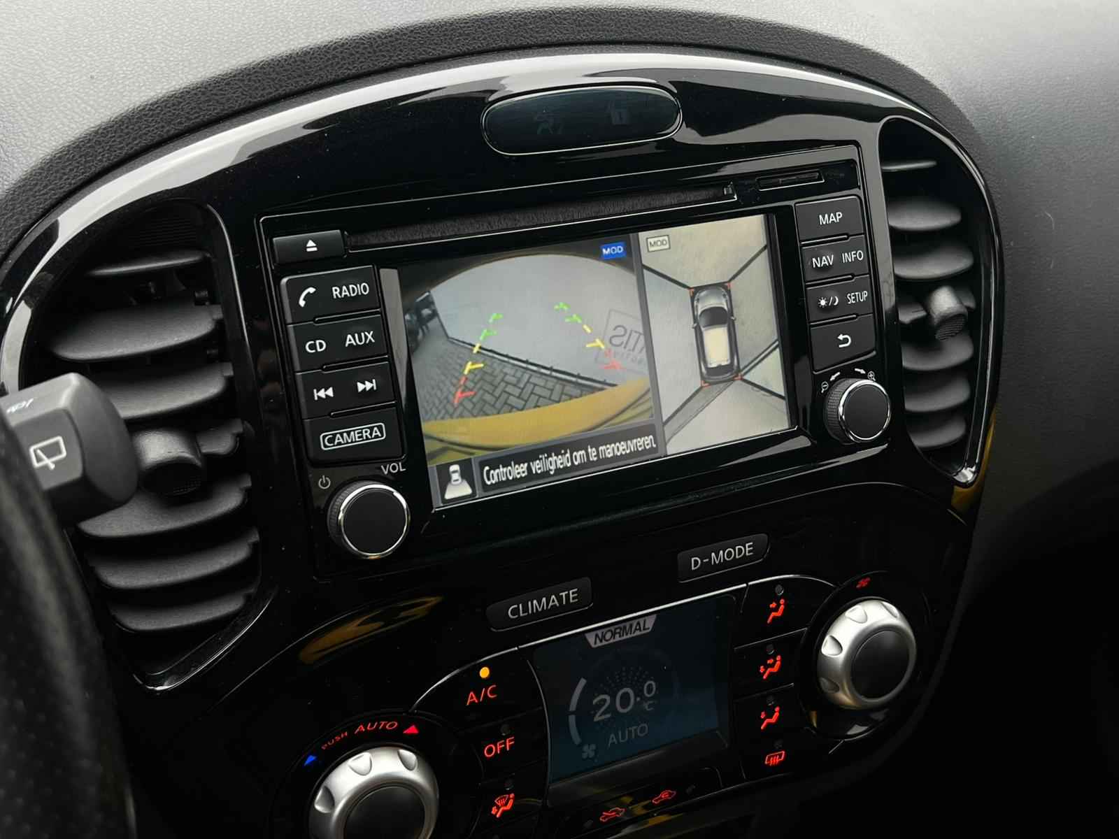 Met de 360 graden camera op deze auto wordt parkeren in smalle parkeerplekken een makkie dankzij het optimale zicht dat het apparaat levert. In een auto als deze kunt u niet zonder automatische airconditioning, zodat de temperatuur altijd goed is. Het drukke verkeer eist onderweg al uw aandacht op. Daarom is het goed dat deze Nissan is voorzien van diverse systemen die u assisteren tijdens de rit. Een automatisch inschakelbare verlichting neemt het waar als het donker wordt of gaat schemeren, en schakelt dan automatisch de verlichting in. Op dezelfde manier "ziet" de regensensor de eerste spatjes regen en schakelt dan de ruitenwissers in, en als het harder gaat regenen zet hij de ruitenwissers ook in een snellere stand. Er is ook cruise control aan boord, om met een constant tempo ontspannen en zuinig te rijden. Zoals u weet, liggen de autosleutels altijd onderin de boodschappentas die u sjouwt. Geen probleem bij deze Nissan Juke. De token in uw jaszak wordt van dichtbij gesignaleerd door de keyless entry en alle sloten gaan automatisch open. Deze Nissan is voorzien van navigatiesysteem, lederen stuur, centrale deurvergrendeling met afstandsbediening, boordcomputer en lederen versnellingspook.