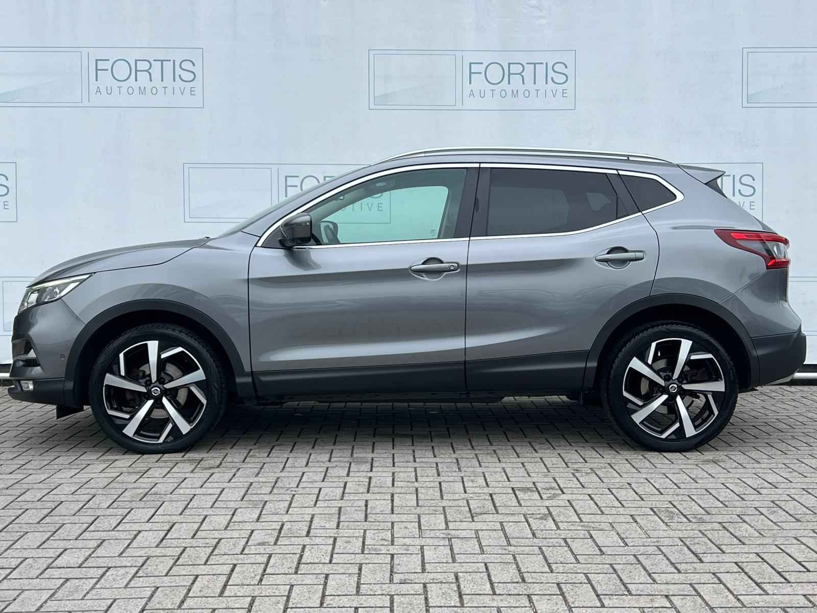 Het is een praktische avonturier, deze Nissan Qashqai, een auto die in alle situaties zijn mannetje staat. De krachtige benzinemotor van deze auto is gekoppeld aan een handgeschakelde zesversnellingsbak. Tijdens gure dagen is het prettig zitten in de verwarmbare voorstoelen. Het glazen panoramadak laat u genieten van een wijds uitzicht en meer lichtinval. Tot de uitrusting behoren ook 19 inch lichtmetalen velgen, LED koplampen, halflederen bekleding, donker getint glas achter, in delen neerklapbare achterbank en LED-achterlichten.