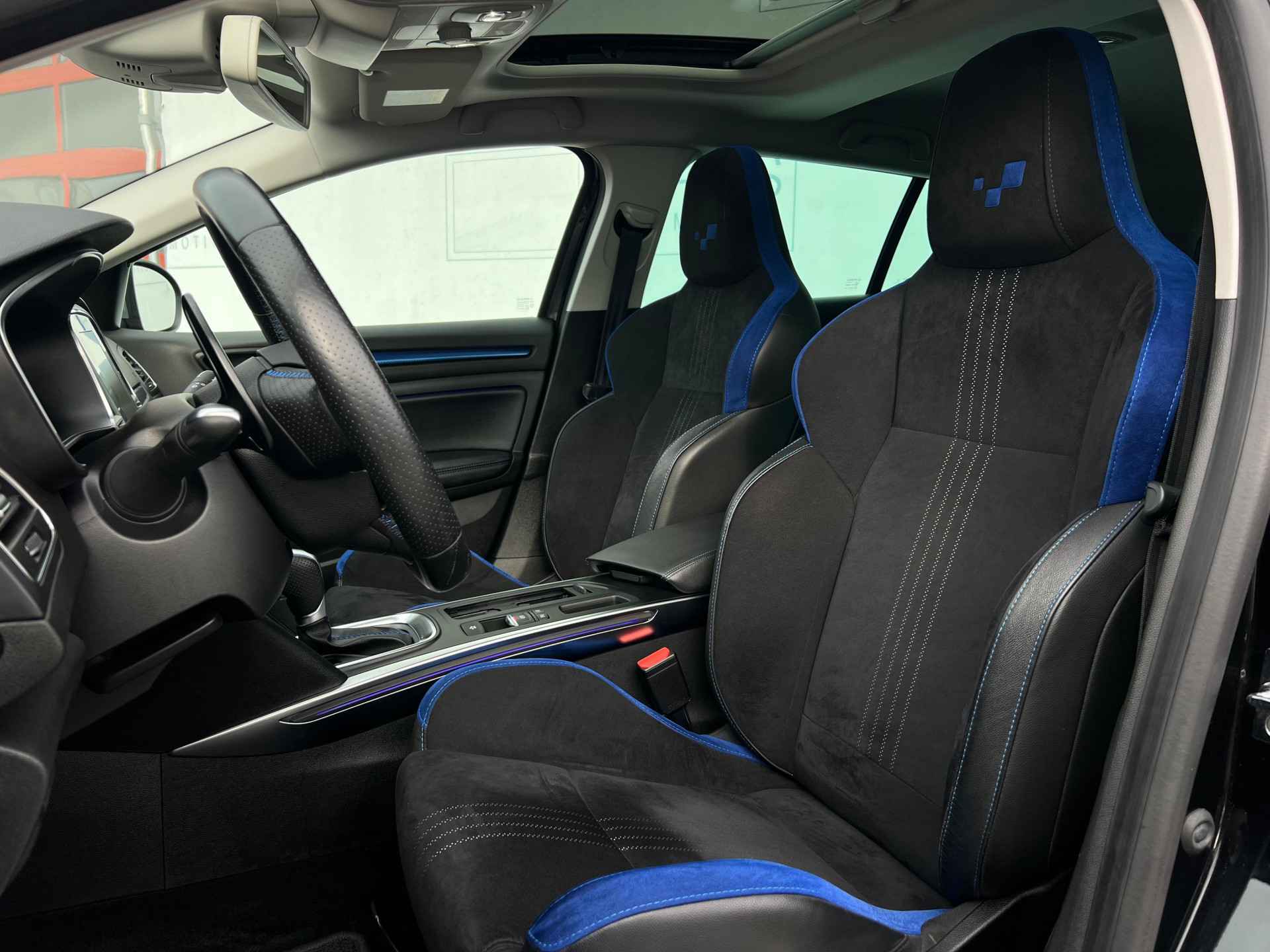 Elegante lijnen en een relatief groot glasoppervlak geven deze Renault Mégane Estate zijn stijlvolle uitstraling. De ledkoplampen benadrukken dat nog eens, ze schijnen krachtig in het donker. Met zijn uitgekiende onderstel en slimme veiligheidssystemen biedt deze auto u te allen tijde veilig en comfortabel rijplezier. De uitstekende prestaties van deze auto komen van de viercilinder benzinemotor en de automatische transmissie. In de verwarmbare voorstoelen zitten is elke keer een welkom gevoel. Sportief rijden stelt eisen aan een stevige zitpositie voor rijder en bijrijder. Vandaar de strakke sportstoelen! In deze Renault profiteert u onder andere ook van: 18 inch lichtmetalen velgen, LED koplampen, sportonderstel, donker getint glas achter, in delen neerklapbare achterbank en LED-achterlichten.