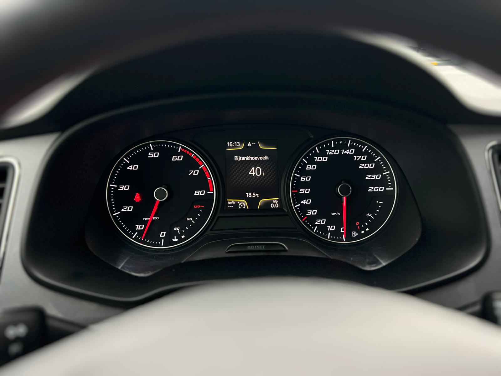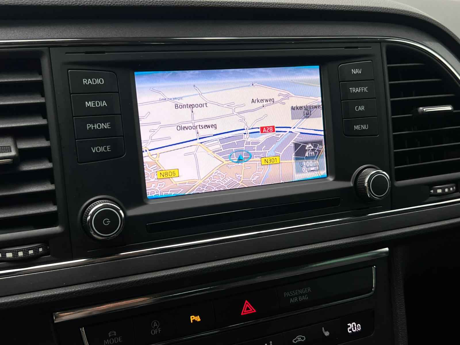 U bedient het navigatiesysteem en het audio-installatiesysteem via knoppen op het stuur. Zo kunt u steeds uw aandacht gericht houden op de weg. Met automatische airconditioning hoeft u alleen de gewenste temperatuur in te stellen. Het systeem doet de rest. De meeste schade bij inparkeren komt van een randje of paaltje dat u even niet zag. Maar de parkeersensoren zien alles en waarschuwen op tijd. Achter het stuur van deze SEAT bent u niet alleen. De auto kijkt als het ware met u mee tijdens de rit. De regensensor schakelt de ruitenwissers in als het nodig is en de automatisch inschakelbare verlichting doet de lichten voor u aan. Deze auto is voorzien van automatisch dimmende binnenspiegel, lederen stuur, centrale deurvergrendeling met afstandsbediening, boordcomputer en lederen versnellingspook.