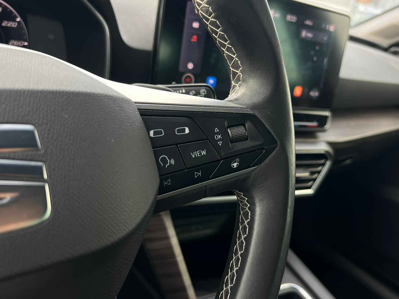 De digitale wereld van mobiliteit verwelkomt u; op het digitale dashboard wordt alles weergegeven om uw rit gemakkelijk en veilig te maken. Met een gerust hart achteruitrijden? Dat kan, dankzij de achteruitrijcamera. Intelligente spraakbediening herkent uw commando's en voert opdrachten snel en soepel uit. Deze SEAT Leon is voorzien van remote services. Via uw smartphone bedient u diverse functies ook op afstand en krijgt u informatie over de status van uw auto. Nooit meer de weg kwijt: daarvoor zorgt het onboard full map navigatiesysteem. Deze auto is voorzien van automatische airconditioning, draadloos opladen, DAB ontvangst, regensensor, cruise control en sportstuurwiel.