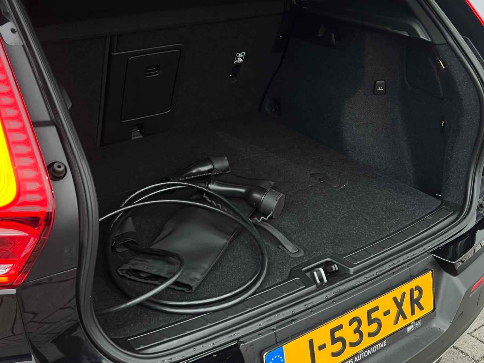 Wat Volvo biedt, is al jaren ongeëvenaard. Duurzaam, innovatief, comfortabel en veilig: 'Volvo for life'. Stil en stevig optrekken zonder extra uitstoot? De elektromotor zorgt ervoor! Een krachtige motor geeft deze auto zijn sportieve prestaties. Binnenin zien we een fraai afgewerkt lederen interieur. Ga samen met uw bijrijder lekker zitten in de verwarmbare voorstoelen. De elektrisch bedienbare achterklep opent met een druk op de knop. Voor en achter: iedereen dezelfde luxe. Vandaar de verwarmde achterbank. Tot de voorzieningen van deze auto behoren 19 inch lichtmetalen velgen, LED koplampen, sportonderstel, in delen neerklapbare achterbank, LED-achterlichten en verstelbare lendensteunen.